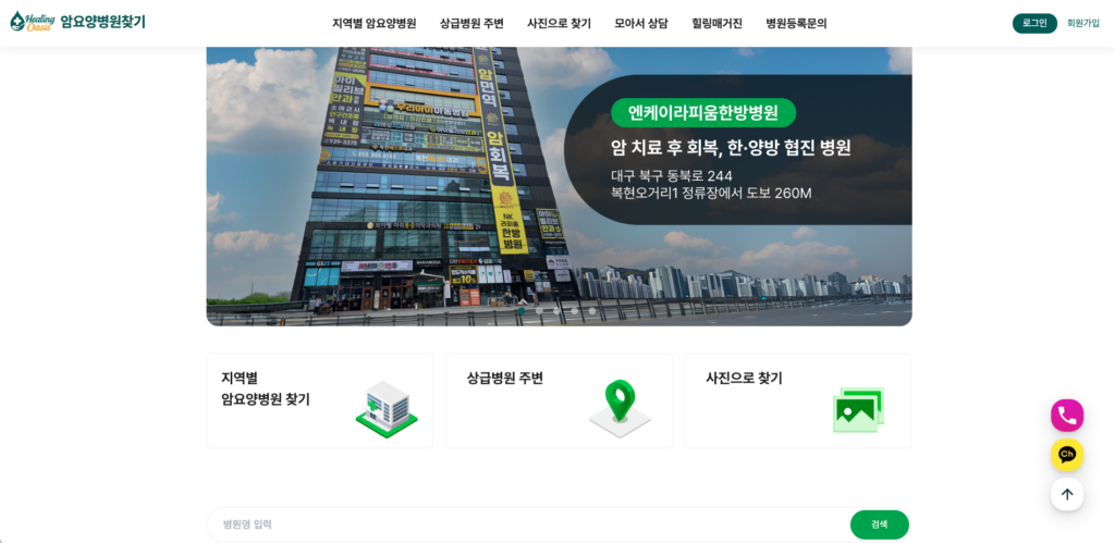 힐링오아시스는 암환자와 보호자를 위한 암요양병원 찾기 플랫폼입니다.