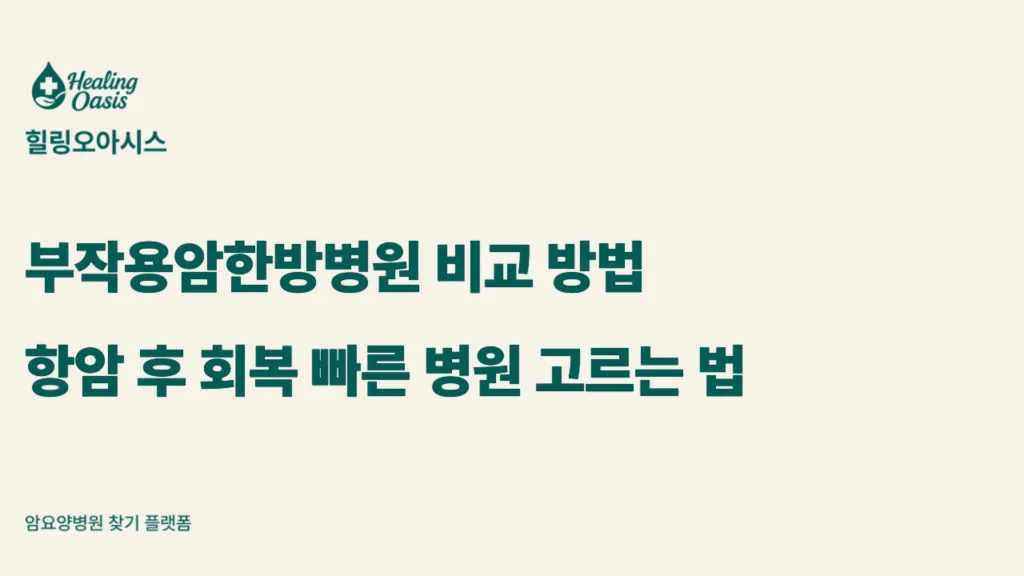 항암치료 후 회복 속도를 높이려면 어떤 병원을 선택해야 할까요? 부작용암한방병원 비교 방법을 통해 치료 후 증상 완화와 체력 회복에 도움이 되는 병원 선택 기준을 자세히 알아봅니다.